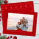 Celebre la temporada con esta encantadora tarjeta de vacaciones estilo suéter nórdico roja. Con un acogedor diseño de isla y un gran fotograma, es la manera perfecta de enviar cálidos deseos de su familia. Personalice con su foto, nombre de familia y año para un saludo festivo y sincero.
