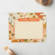 Esta tarjeta de papelería horizontal de tamaño 4.25x5.5 A6 personalizable incluye tu nombre en una placa con nombre naranja, con un fondo de ilustracion floral retro y groovy.
