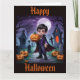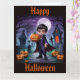 Un pequeño vampiro adorable está listo para Halloween en esta divertida y espeluznante tarjeta de Halloween. Añade tu propio texto personalizado.