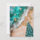 Tarjeta de Navidad de Playa única, con hombres de pan de jengibre llegando con la marea y todos los adornos para el árbol de Navidad.