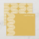 Creada para coordinar con la colección de arte y papelería "Lombard", esta tarjeta moderna se inspiró en la calle Lombard de San Francisco, conocida como la "Calle más torcida del mundo". La tarjeta presenta 7 líneas de color blanco dispuestas en un patrón sinuoso, y colocadas sobre un fondo dorado. Hay espacio para el nombre del cliente en la esquina superior derecha, junto con un amplio espacio para un mensaje escrito a mano. La parte posterior de la tarjeta presenta un patrón de líneas onduladas que coordina con el diseño. El diseño es minimalista, pero audaz, y sería un regalo perfecto tanto para hombres como para mujeres.