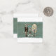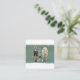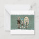 Tarjeta de Pascua con fondo de papel verde desgarrado tanto en el frente como en la parte posterior. Dependiendo del tamaño, el aspecto desgarrado puede no mostrarse o imprimirse en absoluto. Si esto es un problema, por favor contáctenos y cambiaremos el tamaño para adaptarlo a sus necesidades. La parte delantera es humorística, "Dominación Mundial, Un Huevo a la Vez". Conejo elegante y niña de pie con los brazos cruzados y la niña con orejas de conejo. Árbol con efecto de collage de primavera. Los colores pueden no imprimirse en neón, pero se elegirán los colores más cercanos. El conejo y el huevo también están en la ilustración.