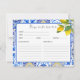 Pequeña Tarjeta de receta de la ducha de la novia Lemon ma