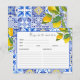 Esta acuarela cítricos de limón de la fruta de las baldosas mediterráneas. Encontró su colección principal de estribillos con limón con flores de limón y azulejos mediterráneos azules y blancos con una receta para que la novia sea texto. Una novia perfecta para ser la receta del fiesta de ducha de novia.
