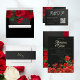 Una respuesta con estilo. Esta tarjeta de respuesta combina perfectamente con tu suite de boda audaz y romántica, que presenta flores rojas, acentos dorados y elegancia moderna. Incluye un código QR y se puede personalizar para que coincida con los detalles de tu boda.