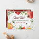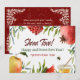 Envía un alegre saludo de Año Nuevo a tu familia y amigos por Rosh Hashanah, el Año Nuevo Judío. El texto de la parte posterior de la tarjeta es totalmente personalizable, por lo que puede agregar su propio mensaje y firmar su nombre. La parte delantera de la tarjeta incluye granadas de color agua pintadas, manzanas, miel y flores en un fondo blanco con felices deseos de Año Nuevo en inglés y hebreo. La parte posterior de la tarjeta presenta elementos de esquina de color crema, elegantes y florecientes y texto de personalizable sobre un fondo rojo blanco.