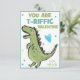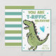 Cute tarjetas de Día de San Valentín de dinosaurios para los niños, perfectas para repartirlas a compañeros de clase y amigos. Disponible con o sin sobres. Este bonito diseño tiene un Dino T-Rex en verde y azul y con You Are T-Riffic Valentine, puedes personalizar el nombre. La parte de atrás es una linda franja verde y azul a juego.