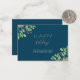 Moderna moda minimalista de moda vacaciones de invierno verde rosa negocios personalizado de texto pequeño de tarjeta de saludo azul con letras del guión de escritura de tipografía de Happy Holidays y vegetación botánica con bayas rojas de temporada. ++++++++++ Personalízalo con tu texto y firma en ambos lados para enviar tus saludos y gracias a tus socios y clientes de negocios!