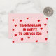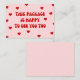 ¡Brilla el día de alguien con esta adorable carta! Presentando el mensaje alegre, "Este paquete está feliz de verte también" junto con corazones adorables. Ya sea un regalo, una entrega especial o un simple agradecimiento, esta tarjeta le agrega un toque personal y acogedor a cualquier paquete. Adecuado para pequeñas empresas