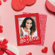 Esta moderna y dulce tarjeta fotográfica Día de San Valentín en aula incluye un fondo rojo colorido, acento cardíaco rosado, una foto vertical y el guión blanco "Be Mine". La parte posterior de la tarjeta tiene un patrón de corazón rojo y rosa, que se puede retirar si se desea. También puede añadir otra foto a la parte posterior y/o texto adicional a la parte posterior. ¡Este tamaño más pequeño es perfecto para el intercambio de tarjetas en aula El día de San Valentín!