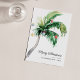 Una moderna y elegante tarjeta de felicitación plana de vacaciones con tipografía de escritura moderna y manuscrita con un Palm Tree decorado. Personalizar fácilmente esta tarjeta haciendo clic en el botón "Personalizar".