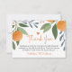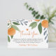 Celebra tu pequeña corbata en el camino con esta encantadora tarjeta de agradecimiento con temática cítrica. Con naranjas acuáticos, vegetación y corazones dulces, este diseño de "A Little Cutie Is On The Way" es perfecto para una ducha de bebé de otoño o de género neutro.