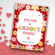 Una tarjeta de San Valentín audaz con poder floral hippie para el aula que es perfecta para cualquier joven. El diseño genial muestra margaritas de colores que bordean una caja de esquinas redondeadas. Letras divertidas al estilo de los 70 añaden un ambiente colorido.