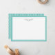 Nuestras tarjetas planas personalizadas de papel de moda cuentan con un vibrante borde azul turquesa verde con su nombre o monograma que graban la parte superior con letras de escritura modernas de color gris oscuro. El lado inverso revela un patrón moderno de entramado en la unión entre el agua y el blanco.