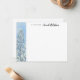 Tarjeta plana pintada de cielo azul y siemprevivas de invierno! Una escena invernal de árboles de hoja perenne nevados contra un cielo azul hace una hermosa tarjeta personalizada. Para cualquier evento especial o durante la temporada de vacaciones, estas tarjetas son una excelente manera de enviar su agradecimiento o escribir notas divertidas.