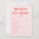 Perfecto para los temas de la ducha de bebé primaveral, la tarjeta Spring Pink Daisy Baby Shower Wishes For Baby Card añade encanto a cualquier celebración. Ideal para las ideas florales sobre la ducha de bebé y los temas de la ducha de bebé en el jardín, se adapta a los temas de la ducha de flores silvestres y a las ideas sobre la ducha de bebé en flor sin esfuerzo. Úsalo para marzo con ideas de ducha de bebé, temas de margarita para la ducha de bebé, o incluso ideas de fiesta de cumpleaños margarita como un tema para el primer cumpleaños o una fiesta de cumpleaños temática de margarita. Celebrar con el tema de la ducha de bebé en flor.