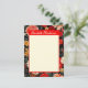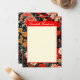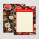 Esta tarjeta de papelería vertical de tamaño 4.25x5.5 A6 personalizable incluye tu nombre contra una llamativa placa roja, con un ilustracion floral vibrante, dramático, rojo y crema sobre un fondo oscuro