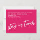 En este artículo, el tipo de letra con letras a mano se utilizó para crear gráficos que representaban las palabras "nueva dirección. todavía viviendo de cajas. no juzguen." en la parte delantera, y "manténganse en contacto" en la parte posterior. El fondo de frambuesa brillante se puede cambiar a cualquier color que prefiera. Por favor, contacte con cualquier solicitud especial o para personalizar la asistencia. // 100 //