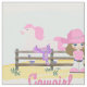 Pequeña vaquera con la tela del caballo y de la silla de montar