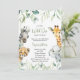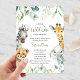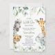 La invitación a la ducha para bebés Cute a Little Wild One is On the Way cuenta con vegetación y bonitos animales de safari acuáticos. Personaliza tus datos.