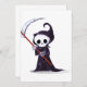 Quiere un aspecto fresco si no un diseño un poco aterrador que sea perfecto para Halloween o los "me gusta", y después echa un vistazo a este pequeño y triste pañuelo. La cara da miedo y es impresionante solo el resto. El pequeño pañuelo está parado en una bata sosteniendo un hacha. Este pequeño diseño de pañales sombríos se ve muy bien en estas invitaciones