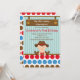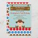 Comience a su pequeña fiesta de cumpleaños dulce de los vaqueros de la derecha con nuestra invitación linda del cumpleaños de los niños del vaquero del bebé que ofrece a un vaquero del bebé que lleva un pañal, las botas de vaquero y fondo de la raya azul del gorra de vaquero con una frontera y una parte posterior rojas, azules y marrones. Lindo para una fiesta de cumpleaños occidental para el primer cumpleaños de un bebé. Visite nuestra tienda para ver otras invitaciones lindas de la fiesta de cumpleaños y haciendo juego gracias las notas, los pegatinas y los sellos. Ilustraciones del © JW