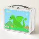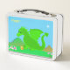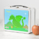 Cute feliz y feliz bebé dragón verde jugando con bola de oro, flores y estrella Lunch Box. El texto feliz se puede personalizar.