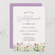 Esta "Invitación de nuestro Pequeño Flor Silvestre" para el primer cumpleaños presenta un delicioso arreglo de hermosas flores silvestres emparejadas con un guión elegante contra un fondo limpio y acogedor. Los suaves detalles violetas le dan un toque de fantasía y encanto, lo que lo convierte en una elección ideal para celebrar el primer cumpleaños de una niña. Vaya a la sección Personalizar plantilla para agregar su información. Elija entre impresiones y/o una descarga digital instantánea. Diseño original de Ana Garza/Kardz Studio Designs. Si tiene alguna pregunta, por favor contacte conmigo a través de la charla de Zazzle.