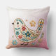 Hermoso Cojín decorativo rosa floral de pájaro