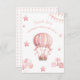 Dulce ilustracion en tonos rosa rubor, que representa a un conejito volando en un globo, globos pequeños, regalos y estrellas.Personalizar esta tarjeta de agradecimiento y añada su agradecimiento.
