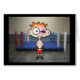 Boxeador personalizado con pelo naranja y pantalones cortos rojos parados afuera del anillo con un gran lustrador morado. ¡Este chico es un campeón en proceso!