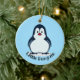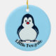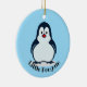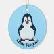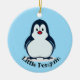Pequeño ornamento acrílico de diseño pingüino con color de fondo de personalizable y texto.
