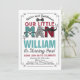 Invitación al primer cumpleaños del pequeño hombre. Todos los diseños son © PIXEL PERFECTION FIESTA LTD