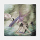 Un cuadro colorido de una pequeña sirena en un estanque.