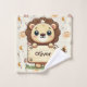 Este adorable paño de lavado personalizado tiene un lindo león caprichoso sosteniendo un cartel con el nombre de tu pequeño.