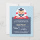 ¡Un pequeño marinero navega a tu manera! Esta encantadora y colorida invitación incluye a un adorable marinero que ondea desde una boya roja y blanca, perfecta para una ducha de bebé con temática náutica. El texto de la pancarta dice "¡Ahoy! ¡Es un niño!" no es editable. Genial para mamá ser quien espera un bebé. Patrón de puntos de polka azul pastel para el fondo. Personalice fácilmente con detalles del fiesta.