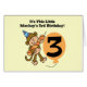 Pequeño Mono 3 camisetas de cumpleaños, imanes, tarjetas, pegatinas, tazas, y más con un mono lindo en una fiesta que lleva una gran vela y un texto que dice "¡Es el tercer cumpleaños de este pequeño mono!".
