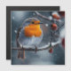 Lindo pajarito petirrojo sentado en una rama en invierno, concepto de Navidad,