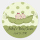 El pegatina lindo de Baby Shower que ofrecía una pequeña vaina de guisante dulce con los chicas de un gemelo del bebé en una polca verde punteó el fondo. ¡Pegatina perfecto para los favores del bebé de los gemelos o los sellos para sobres de la invitación y las invitaciones del nacimiento! Las invitaciones a juego, los sellos y le agradecen observan están disponibles en nuestra tienda en www.celebrateitinvites.com. ©Jessica Weible