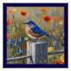 Un delicado pájaro azul está encaramado elegantemente sobre un viejo poste de la valla en un campo de hermosas flores silvestres. Este pequeño pájaro es un símbolo de libertad, tranquilidad y las simples alegrías del campo, y esta escena captura la armonía eterna entre la vida salvaje y la naturaleza.