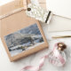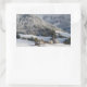 Pequeño pueblo alpino en el pegatina del rectángul
