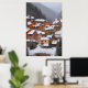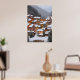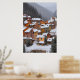 Pequeña ciudad italiana en montaña en invierno con nieve en los techos. Este es un arte generado por IA.