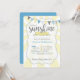 ¡Un pequeño rayo de la sol está en la manera! Invitación de Baby Shower del muchacho del verano. Más diseña disponible en <a href="http://www.zazzle.com/bydandeliondesign">bydandeliondesign</a>