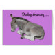 Pequeño y gris pozo de burro dormido sobre un fondo morado. El mensaje delante de la tarjeta dice 'Soñando burro ...' La tarjeta está en blanco dentro para tu propio mensaje. Echa un vistazo a mis otros adorables carritos de burros de New Forest en mi tienda.