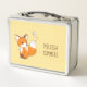 Pequeño zorro lindo viendo mariposa en amarillo