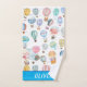 Pequeño, colorido, lindo patrón de globos de aire caliente incluyendo lindos animales en algunos globos para los niños. Tiene un aire de pura alegría y alegría. Puede personalizar el nombre en el diseño.