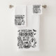 Toalla de baño de Little Horrors... Un trío de personajes personalizados de Halloween —una momia, una linterna de jack-o' y un fantasma— se reúnen bajo la frase descarada "Hay algunos horrores en esta casa", rodeados de murciélagos revoltosos. Con letras atrevidas y energía lúdica, el diseño combina la diversión espeluznante con el estilo festivo, celebrando el caos y la cualidad de Halloween en una escena encantadora.