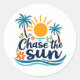 ¡Decoración con una dosis de sol 🌞 ✨! Este pegatina "Chase the Sun" presenta un sol brillante, flores tropicales y olas oceánicas sobre un fondo blanco y fresco. Perfecto para laptops, botellas de agua, revistas y más. ¡Un ambiente tropical que se puede llevar a cualquier parte! 🌴 💛