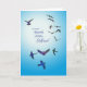 Expresa tu solidaridad por la triste pérdida de una novia. Una carta simple para expresar lo más triste de los sentimientos. Un rebaño de aves multicolores vuela en un cielo azul.