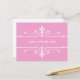 Sencilla y elegante Fancy Ornamental Boda Número de tabla Postcard en rosa y blanco con un sofisticado estilo art deco con un florido borde ornamental. Fácil de personalizar, simplemente agregue los números de tabla apropiados en el campo de texto proporcionado. Haga clic en "Personalizar" para encontrar más opciones de personalización.